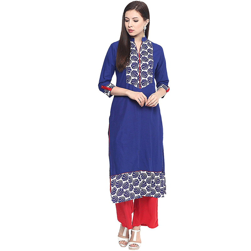 Jaipur Kurti Cotton Kurta With Rayon Palazzo Pants (Blue & Red)
