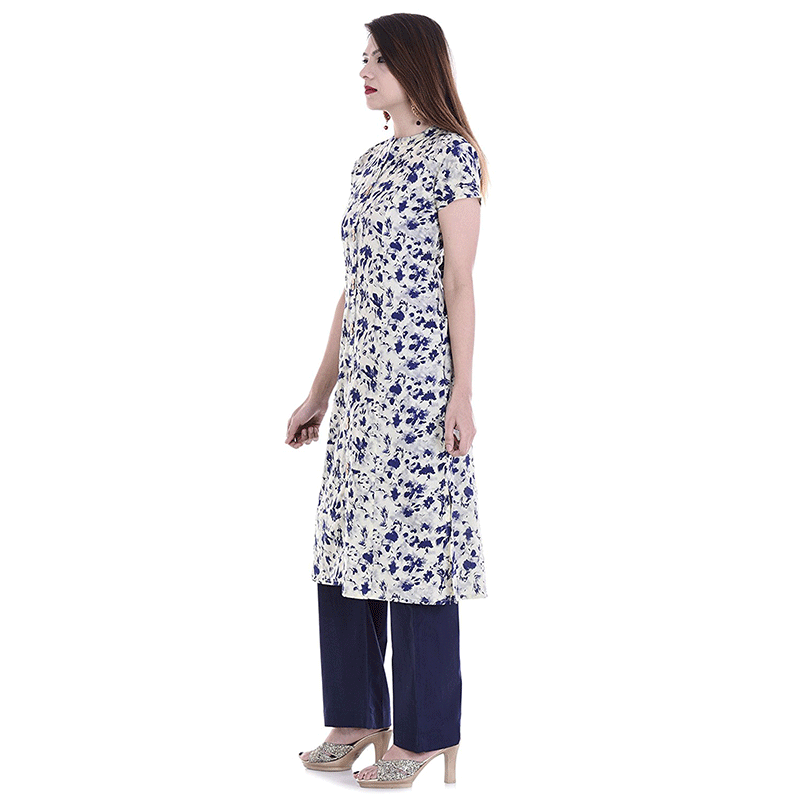 Palakh Women's Cotton Blue&White Straight Printed Kurti With Solid Blue Palazzo