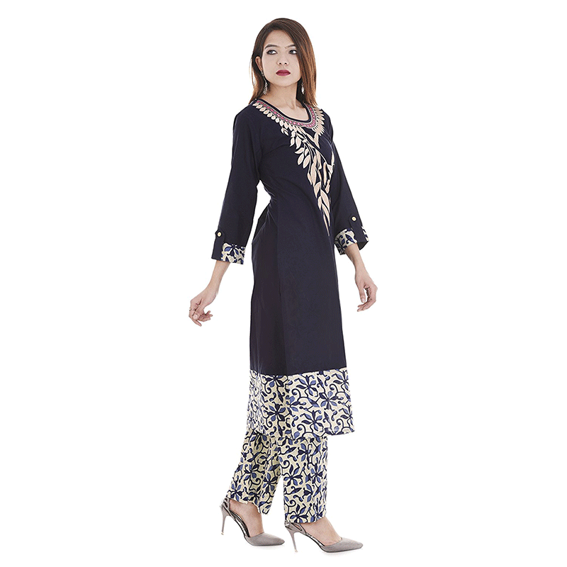 Color of kurti: Blue & Color of Palazzo : Cream Color, Fabric of kurti & palazzo : Cotton